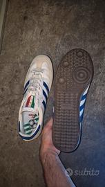 Iconiche Adidas Samba in versione Italia, con dettagli tricolore sulla linguetta 🇮🇹. Modello storico e ricercato, prodotto a gennaio 2008. Per questo motivo, ha qualche piccolo segno di usura dovuto al tempo