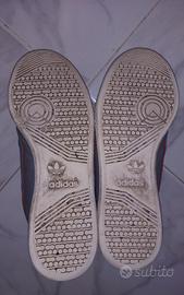 Modello: '80 Continental, inedite con il colore grigio. 📏Numero: US 9; UK 8 1/2; FR 42 2/3; JP 270; CHN 265; Numero modello articolo : B41671; Colore: grigie con bande azzurre e rosse; Calzata: regolare; Materiale interno: sintetico; Chiusura: con lacci; Tomaia: in pelle; Fodera: in tessuto; Suola: in gomma estraibile; ♻️Condizioni: usate in buone condizioni. Le scarpe sono integre, ma sporche, necessitano di una lavaggio a fondo così usciranno come nuove. 🇮🇩Made in Indonesia. Sprovviste della scatola originale. ⚠️L'articolo viene venduto, senza cattivi odori e con un piccolo buchetto all'interno della scarpa destra, come dimostrano le foto.