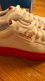 Scarpe Adidas Sleek Super W - Tomaia bianca - Suola platform rossa - Lacci bianchi Indossate una sola volta