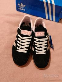 Zapatillas Adidas Spezial en color negro con detalles en rosa. - Diseño clásico de las zapatillas Spezial. - Tres rayas icónicas de Adidas en rosa. - Suela de goma marrón. - Detalle Spezial en dorado.