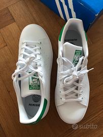 Scarpe Adidas Stan Smith originali, colore bianco con iconici dettagli verdi.