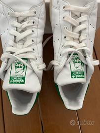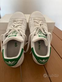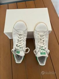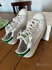 Adidas Stan Smith originali – colore bianche/verdi – ottime condizioni Taglia: 42 Condizioni: usate poco, pelle morbida, piccolo graffio scarpa destra lato interno vocino tallone.