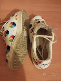 Scarpe Adidas Stan Smith con un vivace motivo a pois color arcobaleno taglia 39 e 1/3
