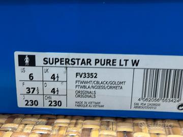 Adidas superstar pure, tomaia in pelle, solo provati in casa ma sono grandi per mia moglie acquistati su amazon completto di fattura