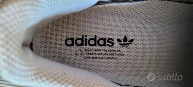 Adidas Superstar taglia 38 2/3 bianche con strisce nere e logo oro.