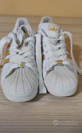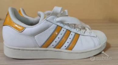 Vendo sneakers Adidas Superstar originali in pelle, con dettagli gialli. Taglia 41 1/3.