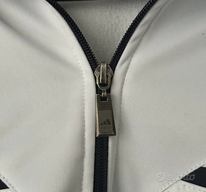 Felpa olimpica Adidas vintage degli anni '90. Taglia L (50). Colore blu con strisce bianche. In ottime condizioni, senza difetti. Design classico con tre strisce sul petto.