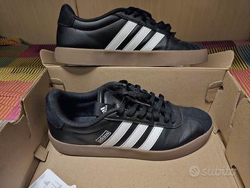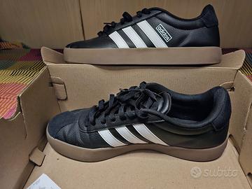 Vendo Adidas VL Court 3.0 originali, taglia 44, usate una sola volta. Condizioni pari al nuovo, senza segni di usura. Colore nero con strisce bianche, modello classico e sempre richiesto. Complete di scatola originale e cartellino dentro la scatola. Perfette per chi cerca una sneaker pulita, comoda e versatile, praticamente nuova ma a prezzo ridotto. Nessun difetto, vendo perché purtroppo per problemi salutari personali ho sempre i piedi gonfi e non mi calzano più comode.