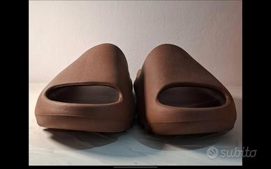 Vendo un paio di Adidas Yeezy Slide in colorazione marrone, senza scatola. Queste ciabatte dal design futuristico sono realizzate con materiali innovativi e offrono un comfort eccezionale. Perfette per l'uso quotidiano, a casa o all'aperto.