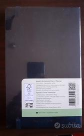 E' una agenda settimanale, di 18 mesi, con copertina rigida. Angoli arrotondati, chiusura con elastico e segnalibro coordinato.