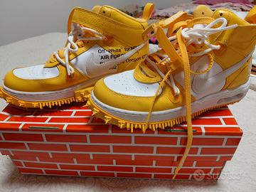 Vendo Air Force 1 Mid x Off White gialle e bianche. usate 4/5 volte . Con scatola originale. 42.5 prezzo 130€