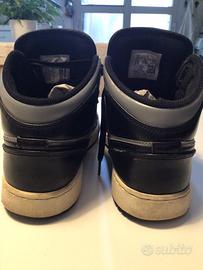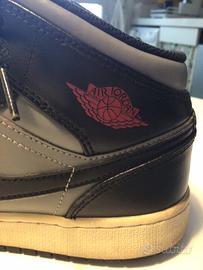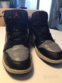 Air Jordan 1 nere e grigie con logo rosso. originali anno 2021. All’ interno la fodera si è rotta, vedi ultima foto.
