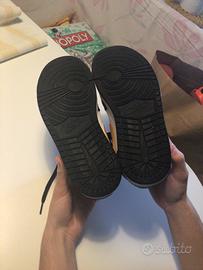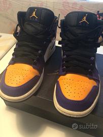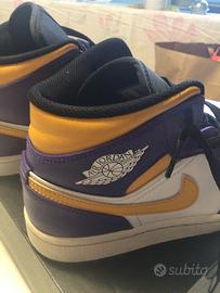 Air Jordan 1 colore viola e giallo stile Lakers. Originali anno 2022