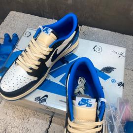 Travis Scott x Fragment Design x Jordan Air Jordan 1 Low OG SP Reverse Swoosh 2.0, una collaborazione a tre, sneaker basse unisex.