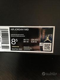 Come da titolo vendo paio di Air Jordan 1 MID, nuove con scatola perfetta e senza nessun tipo di difetto; le sneakers sono assolutamente originali.