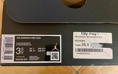 👟 Vendo originali Air Jordan 1 Mid GS, modello iconico in colorway “Bred”.
