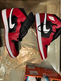Vendo queste Air Jordan 1 Mid Taglia 45, sneakers nuove di zecca, perfette per appassionati di streetwear e collezionisti. Il modello è una reinterpretazione moderna della leggendaria colorway “Bred”, con swoosh bianco e finiture di qualità.