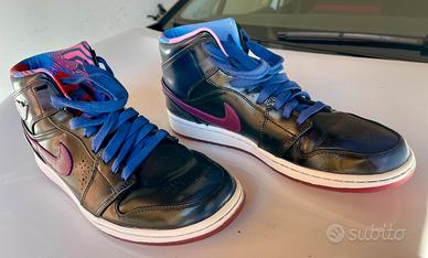 Rarissima edizione limitata "Year of the Horse" (YOTH). Un pezzo da collezione introvabile in queste condizioni, caratterizzato da materiali premium e dettagli unici. AJ1 Mid Nouveau Special Edition. 45 EUR (11 US). Tomaia in pregiato nubuck nero, dettagli iridescenti e interni viola vibrante. Logo speciale YOTH sulla linguetta. Ottime, indossate con estrema cura. Completa di scatola originale dedicata alla release. No sognatori, solo veri appassionati. Un must-have per chi colleziona Jordan 1.