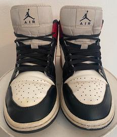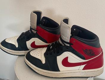 Jordan 1 Mid originali, taglia 39, colorazione classica bianco / nero / rosso.