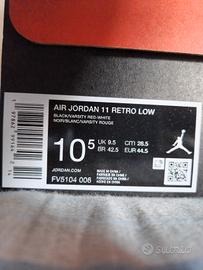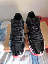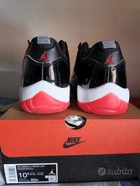 Vendo le leggendarie Air Jordan 11 Retro Low "Bred", uno dei modelli più richiesti e riconoscibili di sempre, con la mitica combinazione di nero, rosso e bianco.