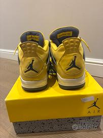 Vendo Air Jordan 4 ‘Ligtning’ originali, taglia 43. Colore giallo con dettagli neri e grigi, modello iconico e molto ricercato. Le scarpe dobo state usate poco, presrntano qualchesegno di sporco ma dink in buone condizioni e con suola ottima.