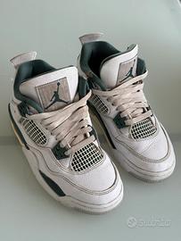 Sneakers Air Jordan 4 Oxidized Green, unisex, taglia 36. Bellissime Jordan 4, usate poco e tenute benissimo. Lanciata nel 2024, colore bianco con striature verdi ossidato, pelle di vitello, caratteristico logo Jumpman, punta tonda, chiusura frontale con lacci, soletta con logo,