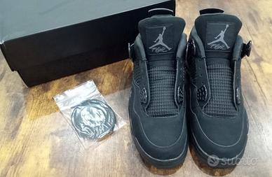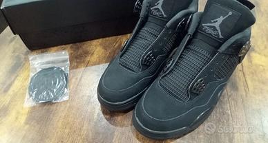 Le mitiche Jordan 4 Black Cat, una delle colorway più richieste e versatili di sempre.