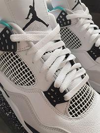 Pulling its color-blocked style from the Air Jordan 4 Military Blue, the Air Jordan 4 Military Black features a smooth white leather upper with a light grey Durabuck toe wrap and netted TPU inserts. Military Black eyelets, heel tabs, and underlays add a stark contrast to the upper. At the base, a white, black, and light grey sole with a visible Air unit completes the design.