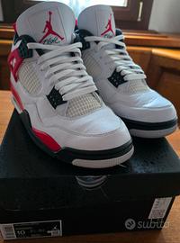 Vendo come da titolo Jordan 4 Retro colorazione Red Cement in taglia EU 44 / US 10. Le scarpe sono originali, acquistate presso rivenditore online Stockx certificato e con fattura disponibile. Sono state utilizzate veramente poco e si presentano in condizioni generali più che ottime. Non sono presenti segni particolari di usura sulla tomaia (escluso ovviamente qualche piega normale da camminata) e anche la suola è in ottime condizioni. Box originale disponibile e incluso nella vendita. Consegna a mano zona Treviso e dintorni o spedizione disponibile tramite servizio TuttoSubito (o gestita da me assicurata e tracciabile). Per altre foto e informazioni contattatemi direttamente via e-mail. Lascerò successivamente al diretto interessato il mio numero di telefono per una comunicazione più rapida e diretta.