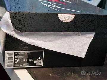 Vendo Air Jordan 4 Retro Red Cement bianche e rosse, taglia 43, nuove e mai indossate. Le scarpe sono in condizioni perfette; unico difetto: la scatola si è rovinata, quindi le vendo senza scatola.