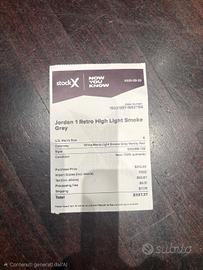 Jordan 1 Retro High Light Smoke Grey n. 41 Discrete condizioni