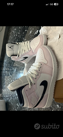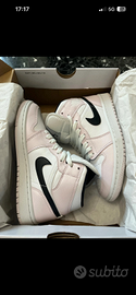 Air Jordan donna rosa pastello e bianche baffo nero bellissime nuove con scatola originali indossato una volta errato acquisto del numero
