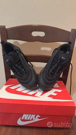 Vendo scarpe air max 97 (silver) in colorazione nera. Numero 39, scarpe originali (vedere i codici su linguetta interna e scatola originale). Acquistate presso il foot locker di sanremo e usate raramente da mia mamma. Vendo causa inutilizzo. Eventuali costi di spedizione saranno a carico di chi acquista.