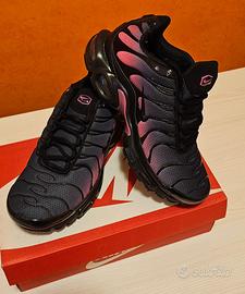 Vendo bellissime Nike Air Max Plus (TN) nell'esclusiva colorazione con sfumatura dal nero al rosa/magenta. Un modello iconico che non passa inosservato, perfetto per chi ama lo stile urban e streetwear. come da foto • Dettagli: Suola con tecnologia Tuned Air intatta, tomaia in mesh traspirante con gabbia in TPU lucida. • Caratteristiche: Calzata comoda e ammortizzazione massima. • Extra: Scatola originale inclusa. Disponibile per spedizione immediata o consegna a mano. Contattatemi per altre info!