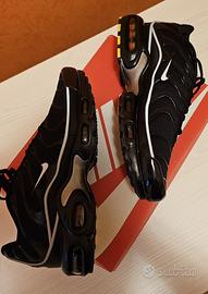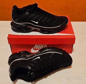 Vendo bellissime Nike Air Max Plus (TN) nell'esclusiva colorazione total black Un modello iconico che non passa inosservato, perfetto per chi ama lo stile urban e streetwear. • Condizioni: Ottime (come da foto). • Dettagli: Suola con tecnologia Tuned Air intatta, tomaia in mesh traspirante con gabbia in TPU lucida. • Caratteristiche: Calzata comoda e ammortizzazione massima. • Extra: Scatola originale inclusa. Disponibile per spedizione immediata o consegna a mano. Contattatemi per altre info!