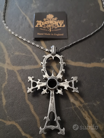 Alchemy Gothic Ankh, collana originale in peltro senza piombo. Il ciondolo misura 74 mm x 42 mm x 8 mm nel punto più largo. Da aggiungere spese di spedizione (consegna a mano disponibile nel comune di Terracina, Latina o Roma zona Tor Vergata/Domus)
