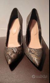 ALDO Decolleté 38,5 ,tacco 10 cm ,scarpe di straordinaria bellezza ed elegantessuto esterno che imita il broccato,anche vera pelle all'interno .la collezione è molto simile alla collezione Dolce & Gabbana.Tacco 10 cm.Sono stati vestiti solo una volta per una cerimonia di 2 ore.