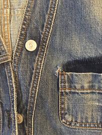Come in foto 6, si mostra poco “rovinata” la taschina a destra sul petto che si è leggermente scucita , comunque poco visibile.