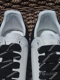 Sneakers Alexander McQueen Oversized colore bianco con tallone nero e lacci a contrasto.