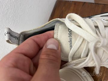 Vendo sneakers Alexander McQueen, taglia 41, veste 42, colore bianco. Sono in ottime condizioni, presentano lievi segni di usura.
