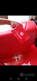 Valigetta alfa romeo in pelle rossa, prodotta dal centro stile alfa romeo nuova mai usata tutta in pelle. La valigetta è completa di custodia in tessuto rosso e scatola originale in cartone rosso.