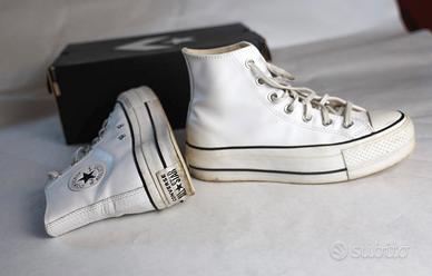 All star Converse in pelle nr. 36,5 colore bianco Modello Alto Donna, Lift Platform. Indossate una sola volta.