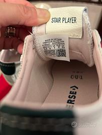 Numero 37, Star Player 76 basse in pelle bianca buchini stile Duilio e marchio verde bottiglia, con scatola. Consegna diretta su Roma o disponibile a spedire.