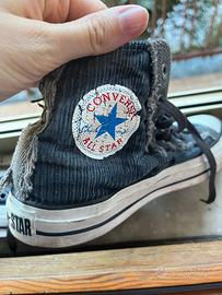 Vendo Converse All Star alte originali in tessuto a coste blue , con effetto vintage. Modello con dettagli consumati volutamente, per uno stile grunge/urban unico.