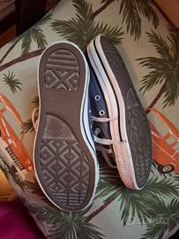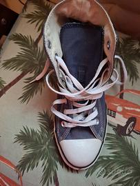 Iconiche scarpe sportive direttamente dagli anni '70. Converse all stars alte. Laccetti originali. Leggermente macchiata in punta una scarpa.