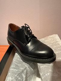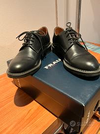 Scarpe in pelle blu scuro allacciate para in gomma marca Frau numero 36. Comoda vestibilita’ presentano vaghe e piccole righe su colmo del piede dovuto al poco utilizzo