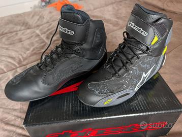 PREZZO RIBASSATO PER VENDITA RAPIDA Vendo scarpe tecniche da moto Alpinestars Faster-3 Rideknit, taglia EUR 41 (US 8.5). Le scarpe sono state utilizzate meno di 5 volte, si presentano in condizioni impeccabili, pari al nuovo, senza alcun segno di usura o difetto. Perché scegliere questo modello: Traspirabilità: Versione Rideknit con inserti in maglia, ideale per l'estate e le mezze stagioni. Sicurezza Certificata: Protezioni su caviglia, punta e tallone (Certificazione CE). Comfort: Leggere come una sneaker ma protettive come uno stivale tecnico. Stile: Colorazione moderna nero/grigio con dettagli giallo fluo ad alta visibilità. Complete di scatola originale e imballaggio. Disponibile per consegna a mano in zona Pesaro per verifica immediata delle condizioni, oppure spedizione tracciata. Prezzo: 99€ LEGGERMENTE TRATTABILI !!CONTROLLA GLI ALTRI MIEI ANNUNCI PER ALTRI ARTICOLI MOTO!! No perditempo o offerte ridicole, la qualità si commenta da sola.
