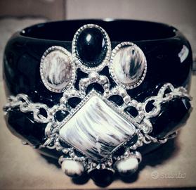 Bracciale nero vintage anni 80 con pietre vere e orecchini clips vintage anni 80 in rame con pietre vere...alta bigiotteria...non spedisco!!! ritiro a carico del destinatario...persone di Caserta o provincia