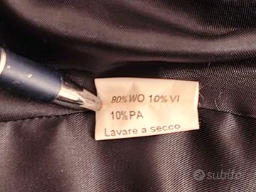 È un cappotto uomo grigio scuro marca ALTATENSIONE Italia taglia 52 con due tasce esterne e una interna. L'interno è foderato e la chiusura è a tre bottoni. La composizione è visibile in una foto, comunque all'80 % è lana.
