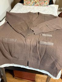 Elegante cardigan in cachemire 95% con rifiniture in 5% lurex -2 tasche e un taschino finto bordati in lurex - sprone in cachemire misto lurex - 3 automatici a scomparsa - ottime condizioni indossato pochissimo